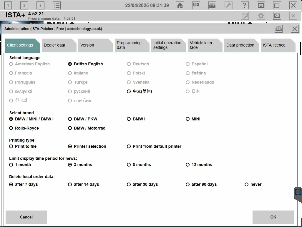 ISTA-P Language: English, Chinese, Czech, Dutch, French, German, Greek, Indonesian, Italian, Japanese, Korean, Polish,