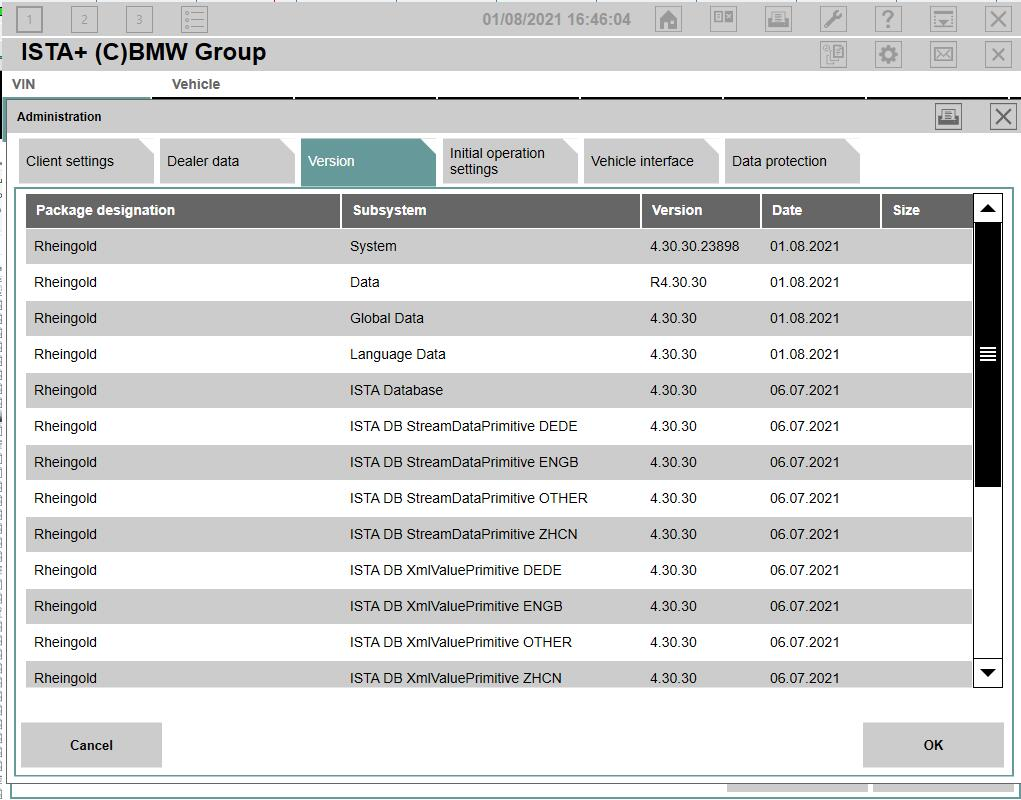 Minimum 20+GB HDD free space for ISTA+ Diagnostics with ONE language, and minimum 100GB for Programming Data.