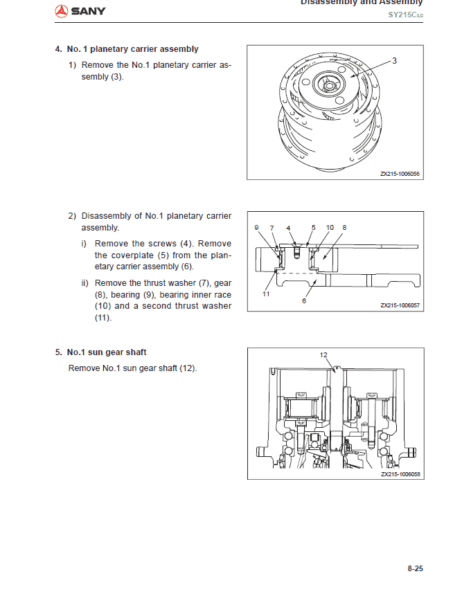 Sany SY215C-LC Hydraulic Excavator Repair Service Manual – 669 Pages