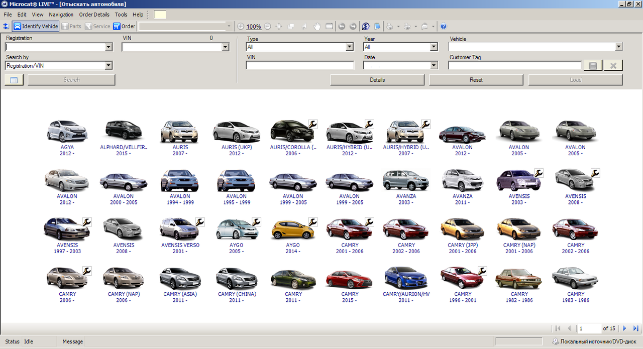 An environment of the program Microcat Toyota Live in all languages. The data only in English, German, French, Spanish and Japanese. There is a search on VIN, on model and type of a body, and also extensive opportunities on search of applicability of number of a detail and reception of the list of numbers of a detail for various models.