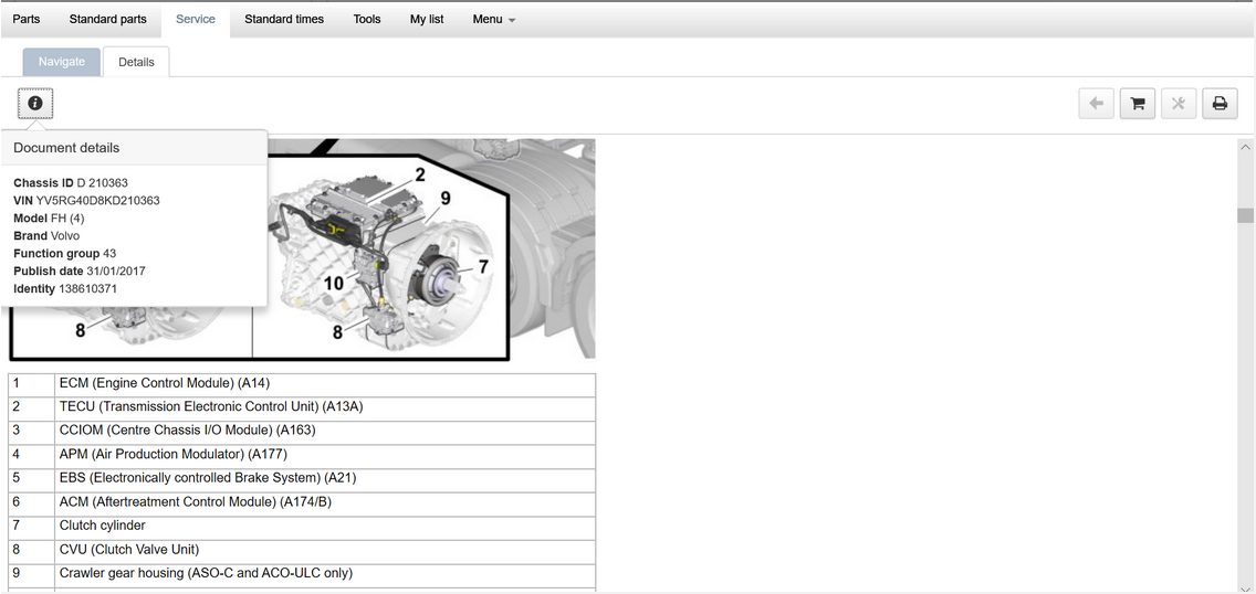 Volvo Trucks & Buses B11R, Spare Parts Catalog