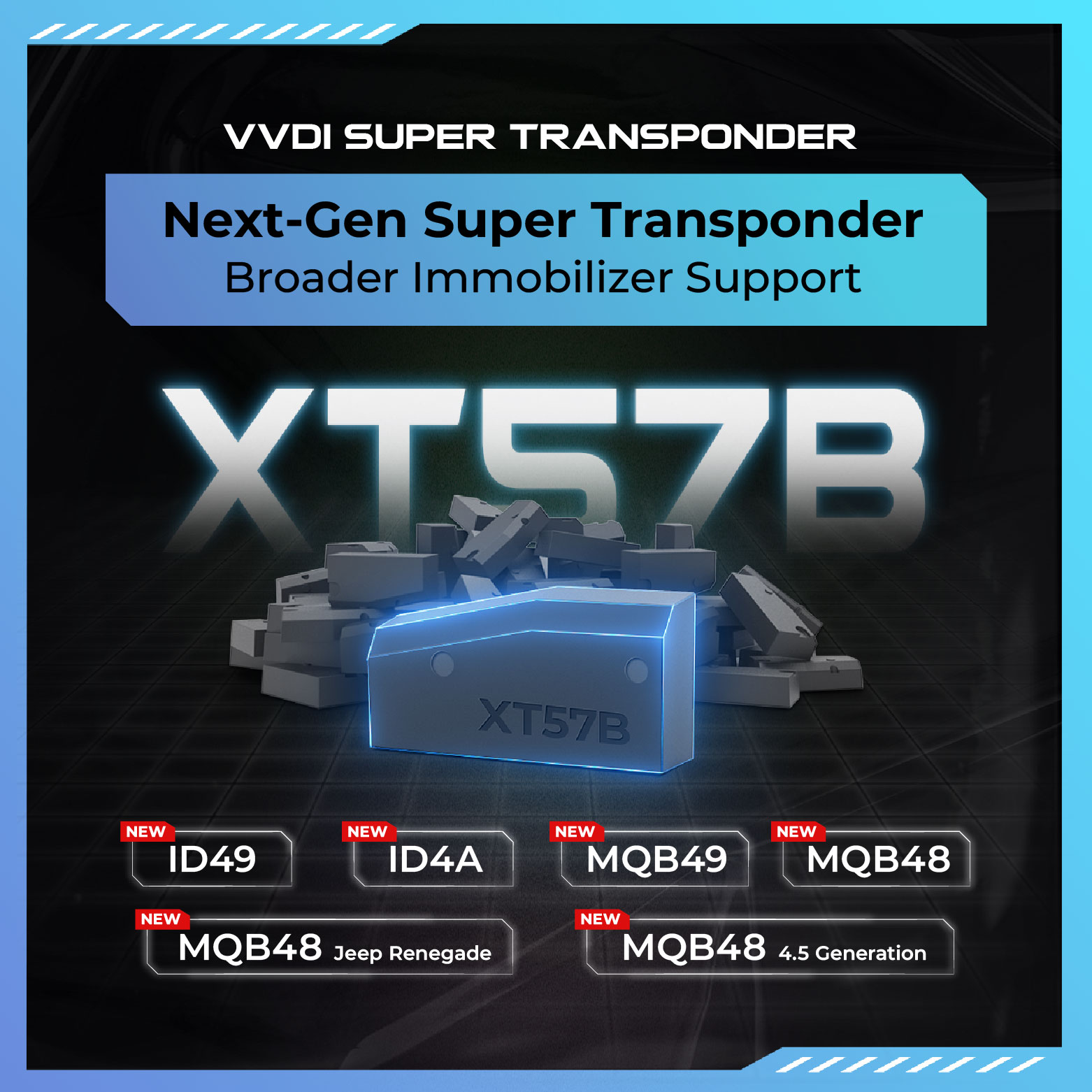 Can be generated, cloned, and matched using VVDI devices, and is also compatible with most common immobilizer programming tools on the market