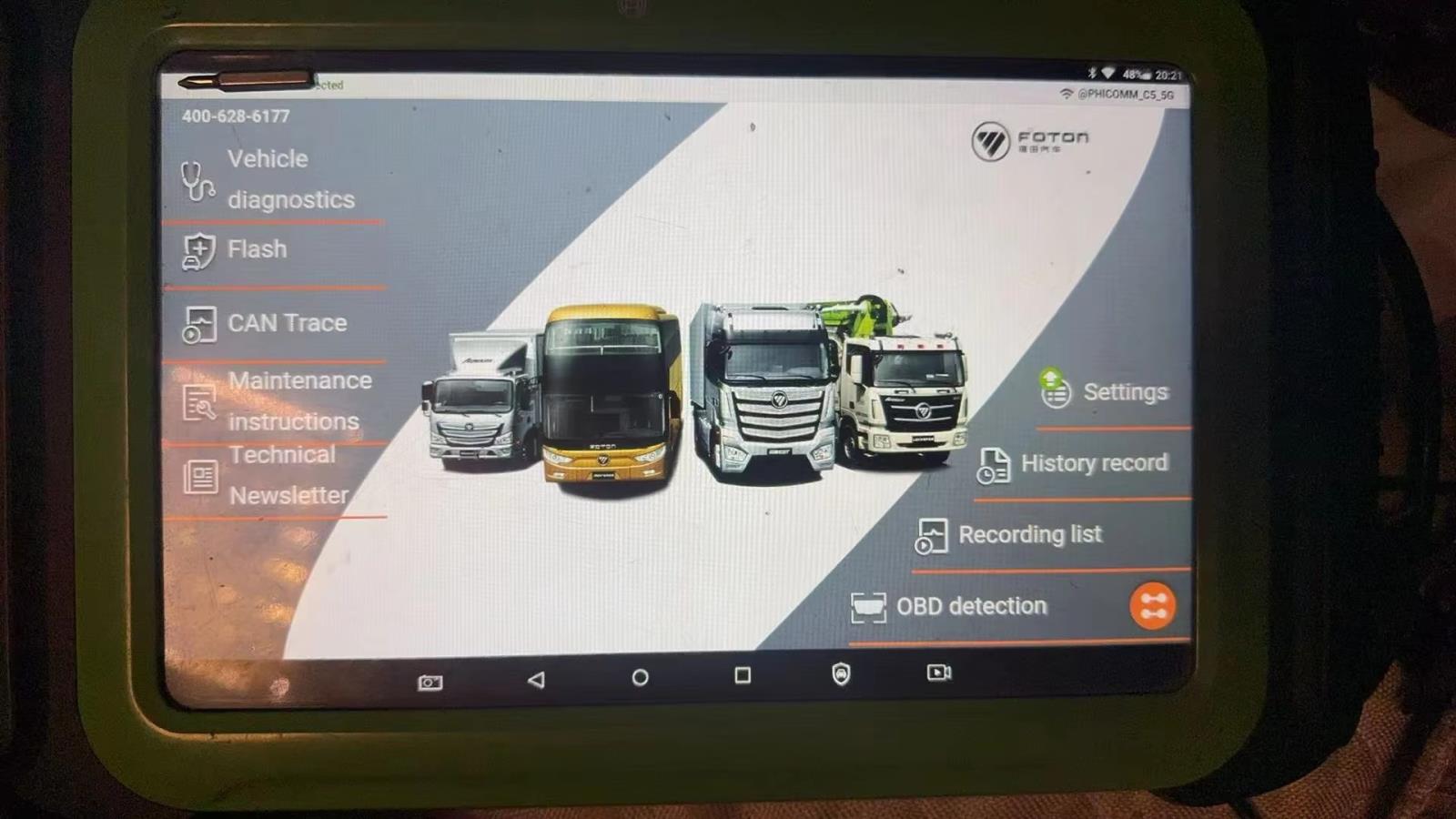 Original Beiqi Foton Scanner is a versatile diagnostic tool for fault detection, Online ECU Programming of complete vehicle controller,Airbag Module Unlock,Key Matching,Tire pressure matching and ECU reflashing for Foton Petrol and EV car truck pick-up truck heavy duty vehicles Including Foton Ouman, Ouhang, Oumako, Ouling, Tuyano, Scenery, Kawen, Foton Pickup, Ouhui, Time Navigation, Xiangling, Ruiwo, Renesas, Proco
